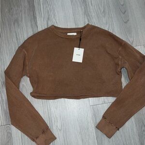 NWT Joah Brown Soho Crop distressed long sleeve top in toast one size