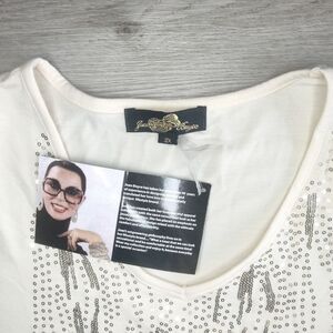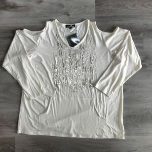 NWT Joan Boyce 2 Piece Outfit Cream Cold Shoulder Top Pants 2 XL