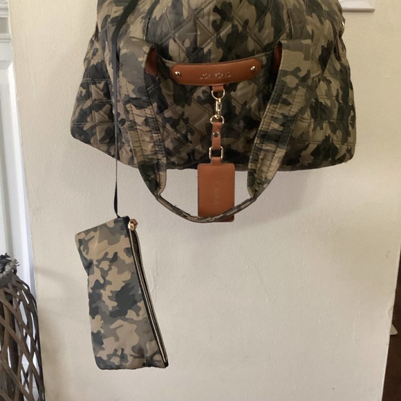 NWT Joan & David Bag Quilted Camo Nylon Duffle Bag Travel Overnight with Pouch