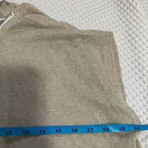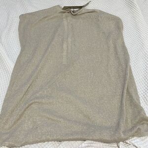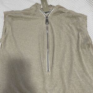 Heather oatmeal, subtle textured, semi sheer, half zip, sleeveless, back curved hem