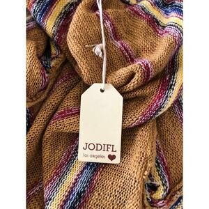 New with tag Jodifl poncho scarf striped, fringe hem. Size: S/M / Tan, Yellow, Burgundy, Blue