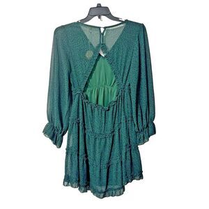 NWT Jodifl Womens Tiered Maxi Dress Green Medium Ruffle Smocked Long Sleeve