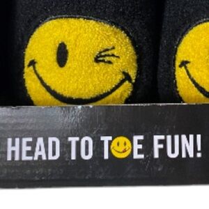 NWT Joe Boxer Women's Smiley Face Black & Yellow Slipper & Hat Gift Set Sz 6-7