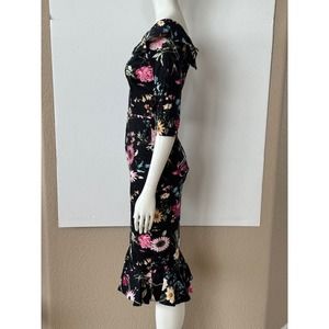 NWT Joe Brown's Women's Dress Black Floral Sz 2 Pencil Off Shoulder Collared