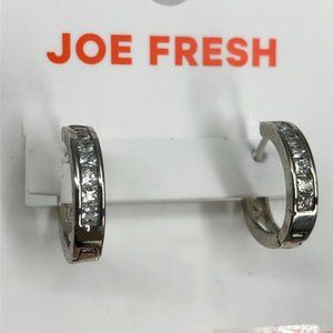 NWT Joe Fresh Silver-Toned Cubic Zirconia Small Hoop Earrings