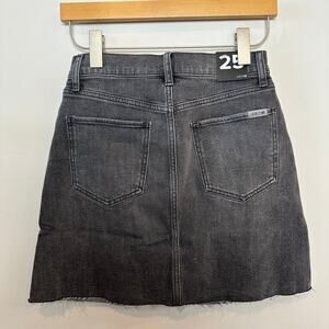 NWT, new with tags, Joe's Jeans Denim Skirt Anastasia Button Fly Grey Charcoal Mini 25. Faded wash gray charcoal. Jean denim mini skirt with raw edge hem, cut off. High rise button fly. Has stretch. High waisted and frayed hem.