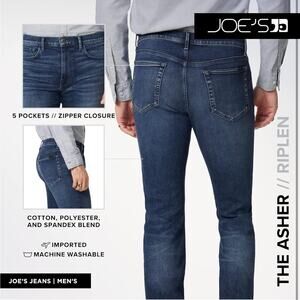 Joe's Jeans "The Asher" jeans made from a kinetic stretch fabric that keeps its shape and has a relaxed feel. Make a statement without sacrificing comfort with our Asher men’s jean. Stylish and made from high-quality materials, these slim-fit jeans for men are ideal for dressing up or keeping it casual.