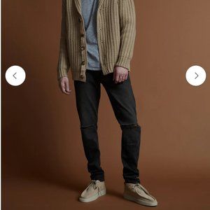 Possibly the most comfortable slim-cut jeans you'll ever wear. The Dean in "Lief" has a tapered silhouette and is dyed a deep, forest green for a rich, almost black color. The timeless, five-pocket construction has distressing at the knees and local grinding for a bit of edge.