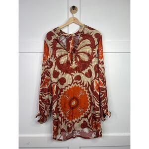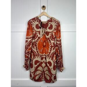 Johanna Ortiz Contorno Lejano Long Sleeve Print Twist Front Orange Multicolor Mini Dress. New with tag!