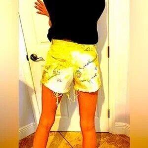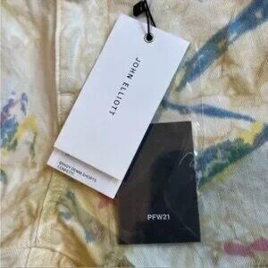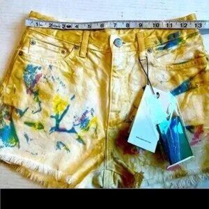 Brand new and gorgeous John Elliott Japanese selvedge denim high-waisted Brady shorts are the perfect addition to your wardrobe! These shorts have a beautiful design and feature a cake and confetti colorway that is sure to turn heads. They are 25w high-waisted and cut off fashionably. The lady's selvage Brady denim shorts are made of Japanese imported fabric and feature a stunning confetti paint splatter design. These shorts are brand new, never worn, and come with all original tags attached. They can be worn year-round and fit true to size at 25 waist. These shorts are so rare, you won't find anything like them! If you love unique and stylish fashion, you will adore these John Elliott Brady denim shorts in the rate and gorgeous confetti colorway. Don't miss out on this opportunity to own a piece of fashion history. Order now and experience the luxury of high-quality Japanese selvage denim!