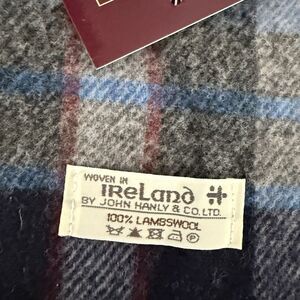 NWT John Hanly 100% Lambswool Scarf Ireland Fringe Blue Plaid Ireland