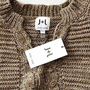NWT John + Jenn Cable Knit Fringe Sleeve Cotton Sweater, Size M