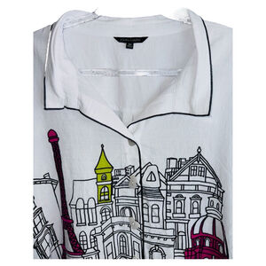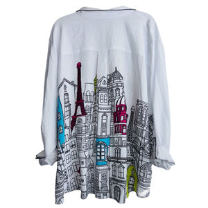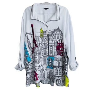 NWT John Mark Amalfi Coast French Scenery Plus Size 3X Women's High Low Blouse