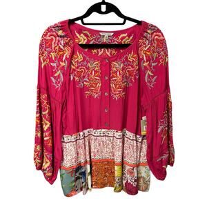 NWT John Mark Pink Multi Embroidered Patchwork Gracelyn Top Womens Size Medium