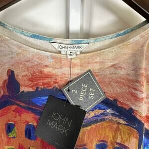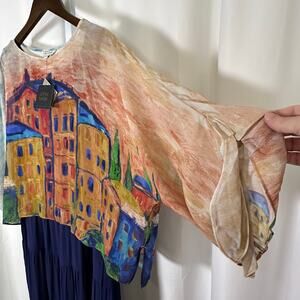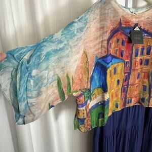 NWT John Mark Tiered Printed Crew Neck Short Sleeve Dress M Artsy Cruise Modest
