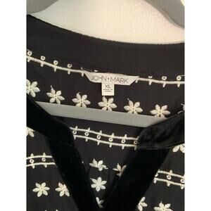 NWT John Mark Women’s Black & White Embroidered Tunic V-Neck Tunic