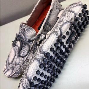 Experience the perfect blend of style and comfort with these John Richmond loafers, featuring a striking gray and white snakeskin pattern. The slip-on design ensures ease of wear, while the decorative laces add a touch of elegance. Ideal for making a statement, these loafers are a must-have addition to your footwear collection.