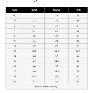 Sizing tips: Every designer cuts their dresses differently & according to their size chart. Please measure yourself (in inches) before ordering & follow our size chart (pictured under the main dress picture). If you are in between sizes or unsure of the fit, choose a size up, as it is easier for your seamstress to take in rather than out. Please refer to the size chart in our images section.