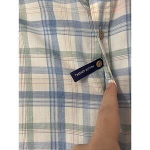 The NWT Johnnie-O Top Shelf Long Sleeve Plaid Shirt in Mens Medium Laguna Blue is a stylish and versatile button-up shirt perfect for various occasions including travel, casual outings, workwear, and business events. Made of a comfortable blend of cotton and modal, this shirt features a collared neckline, button closure, and long sleeves. The classic plaid pattern, embroidered logo accents, and convenient pockets add a touch of sophistication to this timeless piece from the Top Shelf product line. Easy to care for with machine washable instructions, this shirt is a wardrobe staple for any man looking for a quality and fashionable addition to his collection.