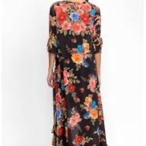 NWT Johnny Was BLACK ROYAL LONG RUFFLE KIMONO Sz Medium