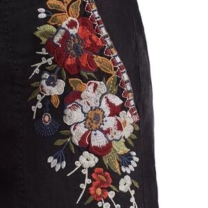 NWT Johnny Was Beatriz Embroidered Shorts in black. 100% linen. Pockets. Zipper fly with tie at waist. Size medium.