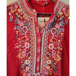 NWT Johnny Was Women's Bethanie Tunic. Red with Embroidery. Size Small. Smoke Free Home.