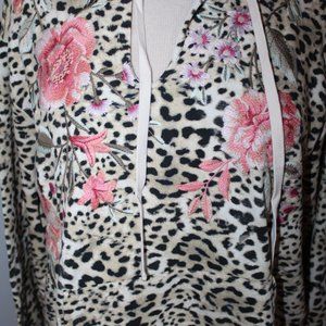 NWT Johnny Was Biya JWLA Embroidered Sweatshirt Vienna Pullover Jacket Hoodie L
