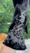 Chic black velvet crop pants with embroidery. Ideal for a fashionable ensemble.