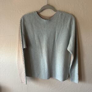 NWT Johnny Was Color Block Blue/ Beige Wool Cashmere Sweater Sz S