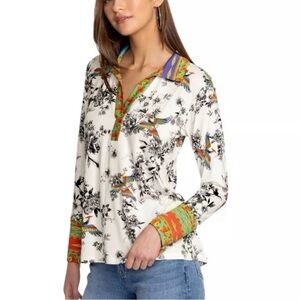 NWT Johnny Was Dreamer Garden Open Collar Split Front Henley Tee Size L NEW