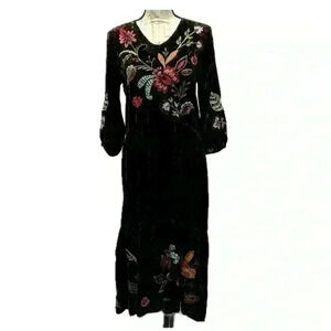 NWT Johnny Was JWLA Isabella Velvet Embroider Tiered Maxi Dress Petite Boho Chic