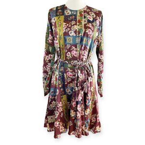 NWT Johnny Was Laurie Pippa Belted Patchwork Mini Dress Women’s S Silk with Slip