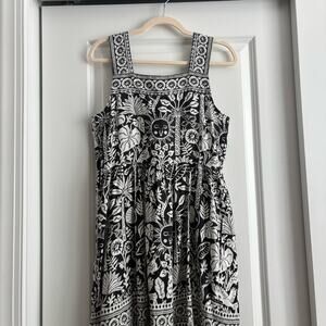 NWT Johnny Was Luciana Tank Dress Black White Sun Moon Floral S Boho Resort Linen