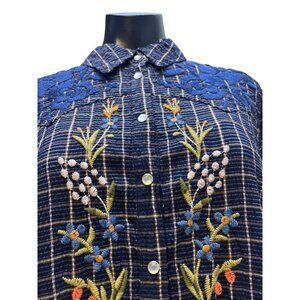 NWT Johnny Was Navy Embroidered Tunic Blouse L