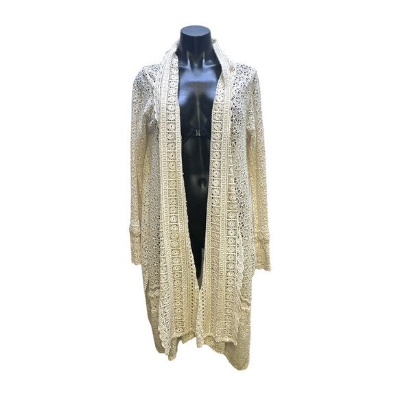 NWT Johnny Was Open Front Cream Eyelet Cardigan w/Lace & Floral Details