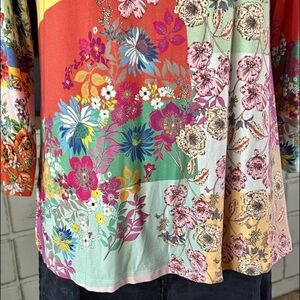NWT Johnny Was Patchwork Tunic Floral Motif Pink & Yellow Large