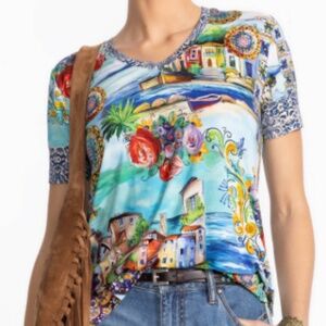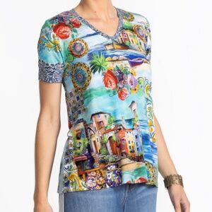 NWT Johnny Was THE JANIE FAVORITE SHORT SLEEVE V‑NECK SWING TEE Size US PXL