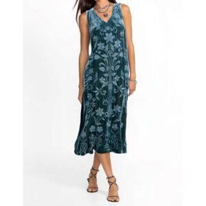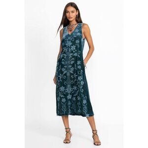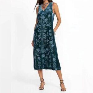 NWT Johnny Was Talithia Velvet V-Neck Dress Peacock Blue Size Large