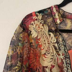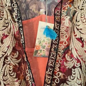 NWT Johnny Was Women's size Small Mazzy Shirtdress Wild Gardenia Night Boho Embroidered. Johnny Was Biya brand women's midi dress in a size small. Item is new with tags attached. Style is the Mazzy Shirtdress in the colorway Wild Gardenia. Peach colored slip underneath, sheer midi overlay. Sleeves to the elbows. Embroidery at the chest. Measurements as pictured. In excellent new condition, see photos for more details. Always feel free to ask any questions you may have! Reasonable offers accepted.