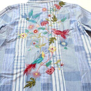 NWT Johnny Was Workshop Zanzibar Shirt in Blue Plaid Embroidered Pearl Snap S