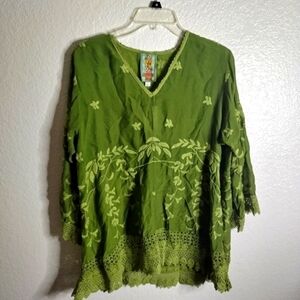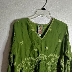 Johnny Was teyanna embroidered tunic green sz S