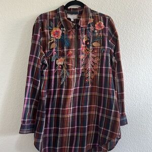 NWT Johnny Was womens Shuri Plaid Tunic embroidery floral animal graphic