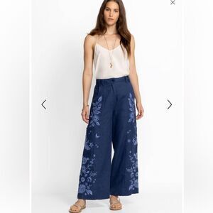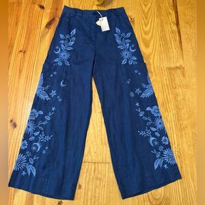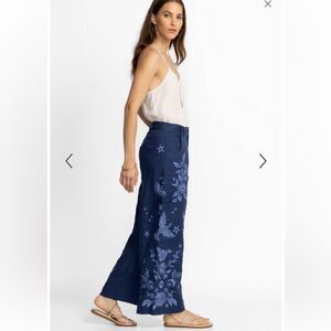 NWT Johnny Was Oleander Wide Leg Pant Size 2 Blue Embroidered Linen Cropped $248