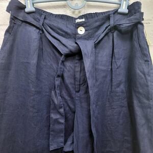 NWT Joie 100% Linen Belted Wide Leg Pants Size L Navy Blue Lightweight Career