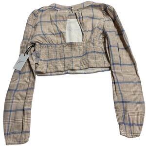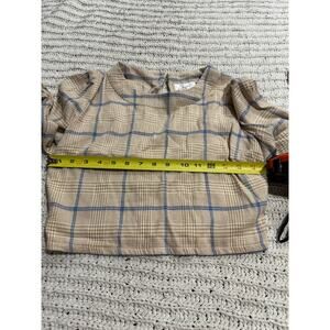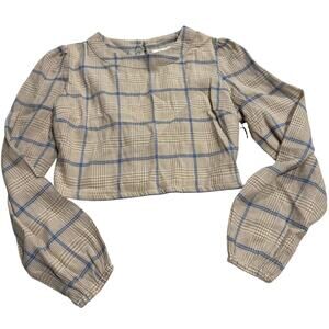 NWT Joie 2 Pc Set Cropped Long Sleeve Top Pleated Skirt Plaid Womens Medium Tan
