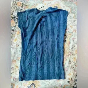 NWT Joie Blue Striped Dyer Linen Blend V-Neck Shift Tunic Dress Sz Medium