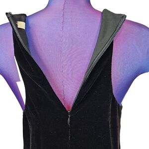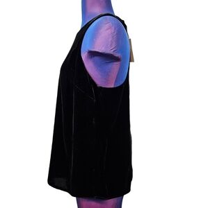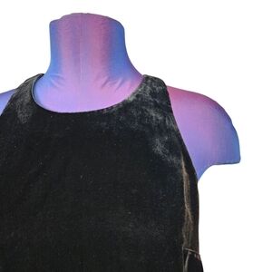 Features luxurious soft black silk blend velvet, sleeveless Joie Brighton top, high scoop neck, racerback, 1/4 hidden back zipper with hook eye closure, fully chiffon lined, flowy and falls at hips, perfect for layering or wear alone, feminine blouse, classic preppy style.