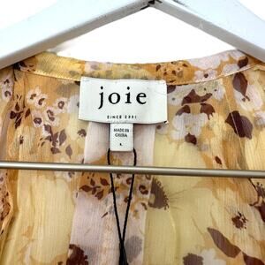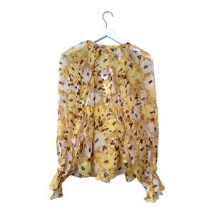 NWT Joie Brigitta Amber Gold Floral Blouson-Sleeve Blouse Size Large