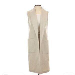 Stylish cream sleeveless long vest. Features two front pockets. new with tags
