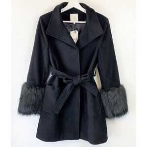 NWT Joie Hesperina Faux Fur Cuff Wool Blend Coat Size S